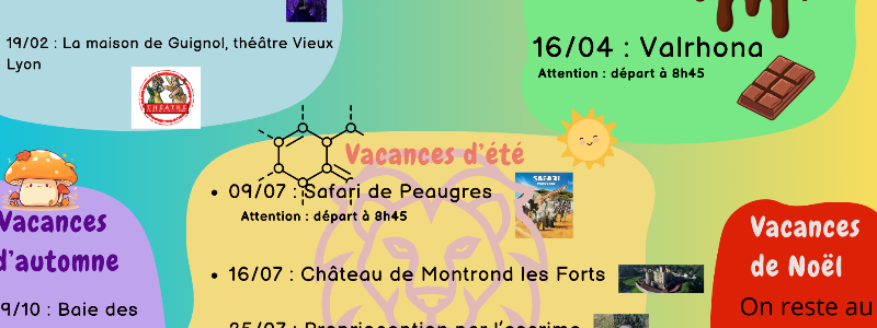 Voici où les enfants iront en 2026 !Attention : ces journées ne sont pas annulables et il faut prévoir un supplément de 9,50€